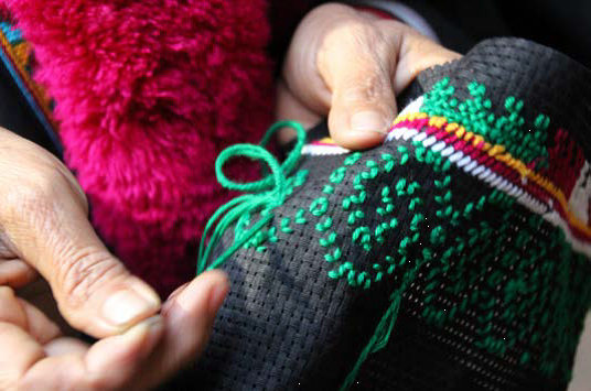 คือ การปักลวดลาย โดยงานปักที่ปรากฏบนผืนผ้าในแต่ละชิ้นนั้น วิจิตรงดงามมาก