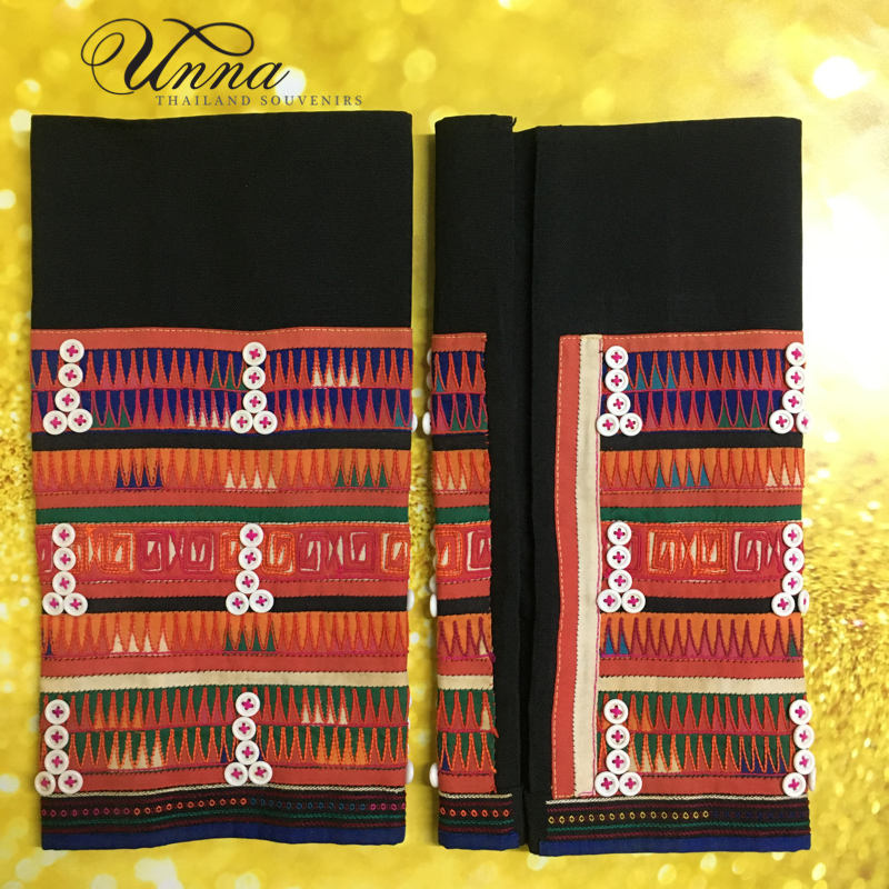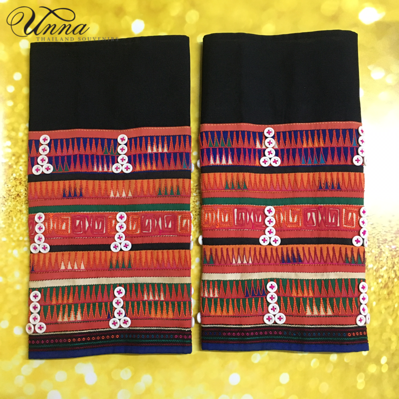 ผ้าพันน่อง ผ้าปักชาวเขาชนเผ่าอาข่า งานเก่าลายสะสม อัตลักษณ์ชนเผ่า 1 คู่่ Akha hill tribe handmade hand embroidery for collectibles