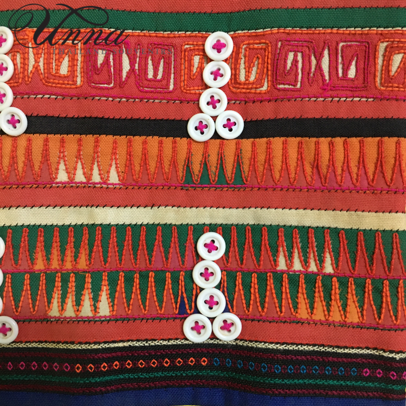 งานปักแต่ละชิ้นของชาวชนเผ่า จะไม่เหมือนกันนะคะ เพราะเป็นงานทำมือ ตามจินตนการของผู้ปักแต่ละคน ซึ่งงานเก่าลักษณะนี้ ค่อนข้างหายากมากขึ้นทุกวันค่ะ